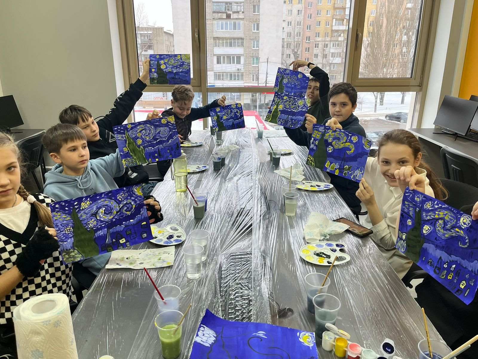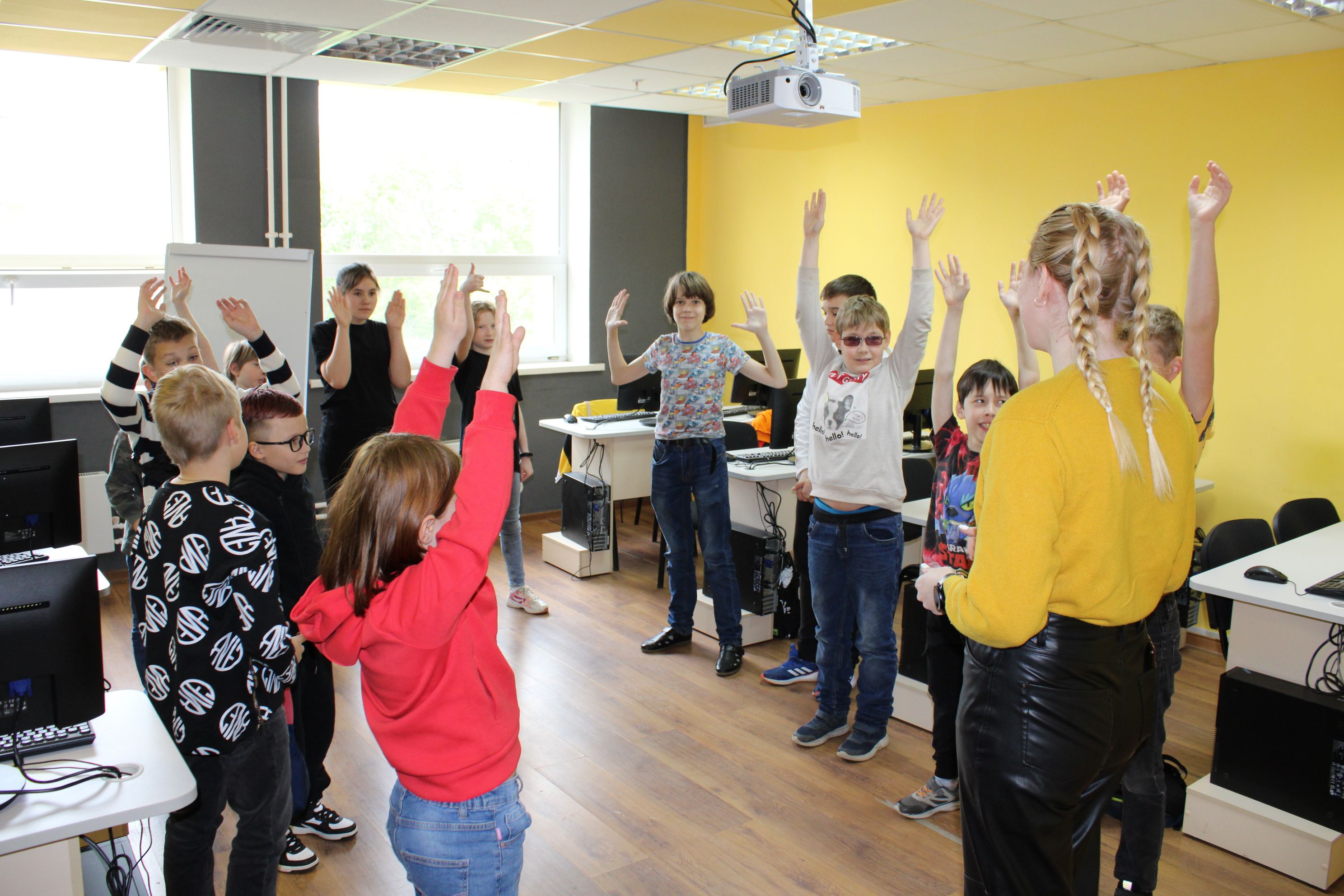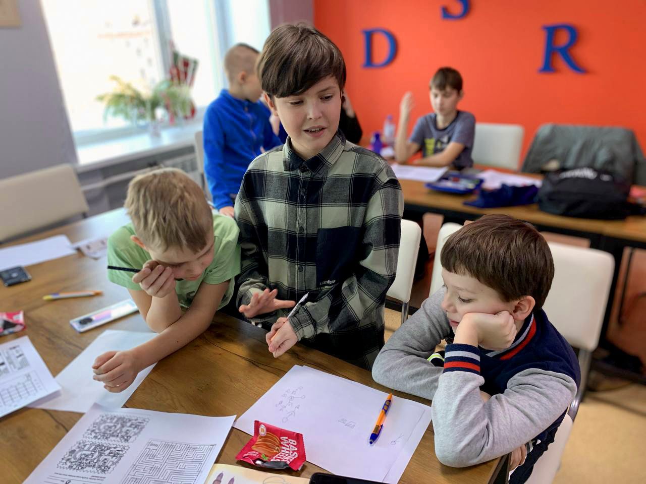 Тут нам надо представить всю красоту , что сделали, родителям, но параллельно у нас будет урок китайского или сербского (да, да, вы не ослышались), и квиз, где мы сразимся за рюкзаки для команды.